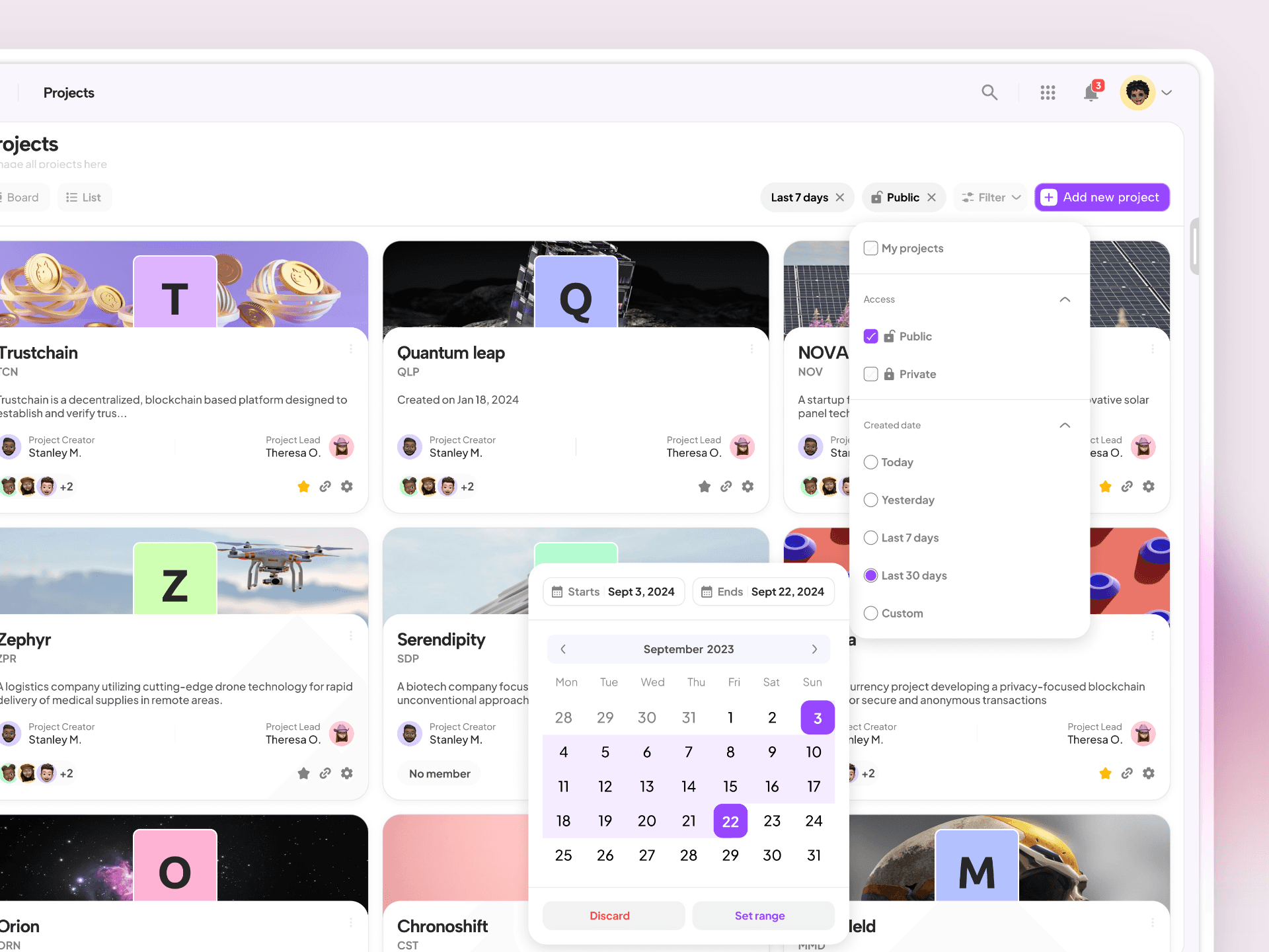 Advanced Filtering: Filter projects by timeline, team, or status