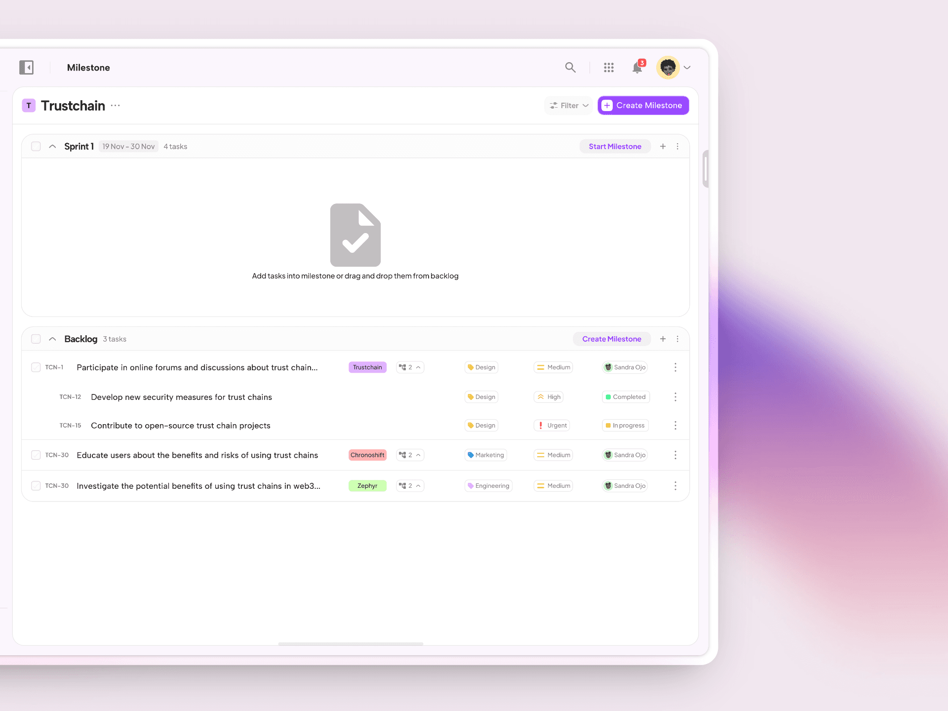 Sprint Planning with Milestones: Plan and track sprint cycles with built-in milestone tracking