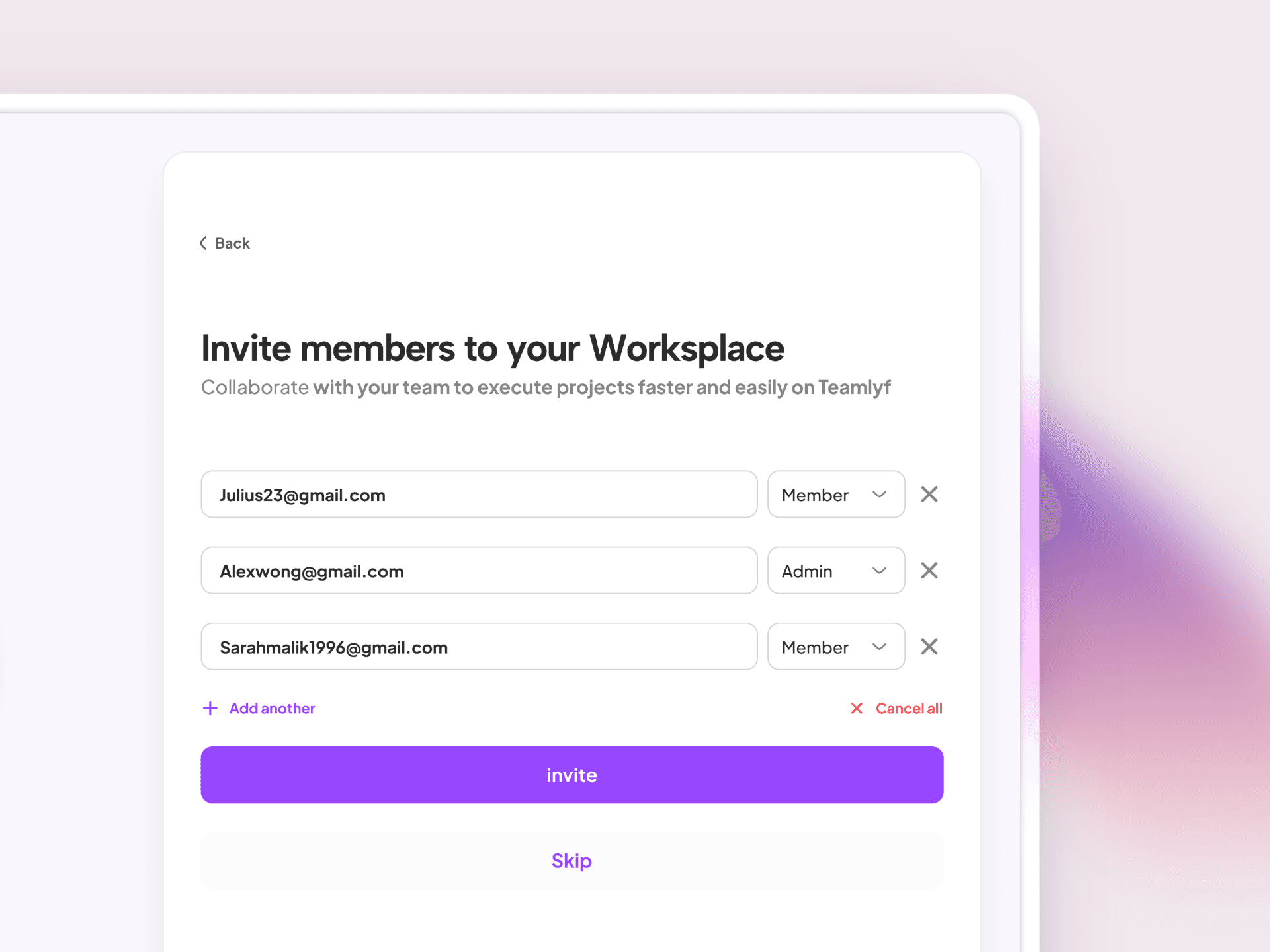 Team Assignment: Add or remove team members with granular permissions